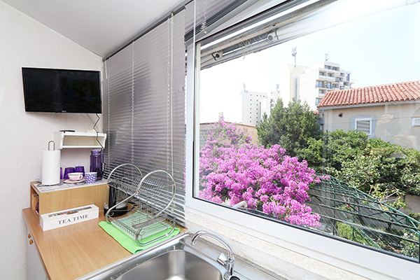 Apartment accommodate 2 person. It is equiped with all kitchen utensils.