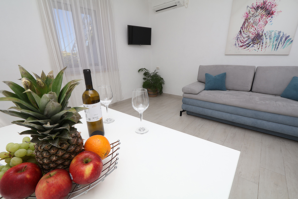 Apartment is located in high groundfloor. It has 2 bedrooms, living room, kitchen, 2 bathrooms, big south balcony. Apartment can accommodate 4-5 person. It is equiped with SAT tv, aircondition, wifi internet access. Parking is in front of the house. Everything is just few minutes from the center. |
